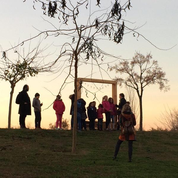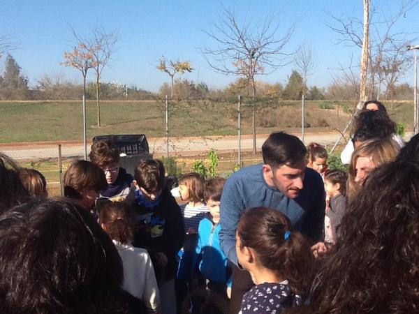 La mañana es esplendida en la Vega de Triana, parece una mañana de primavera pero estamos a 10 de diciembre. Fran, María y Ana aparecen con sus bártulos para el taller de coronas de luz pero algunos niños y padres se les han adelantado impacientes por empezar a trabajar, al principio tímidos pero